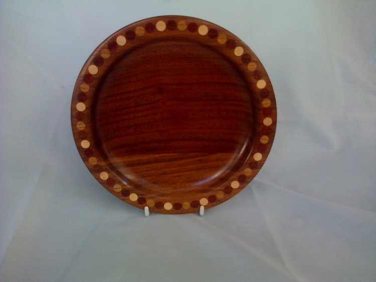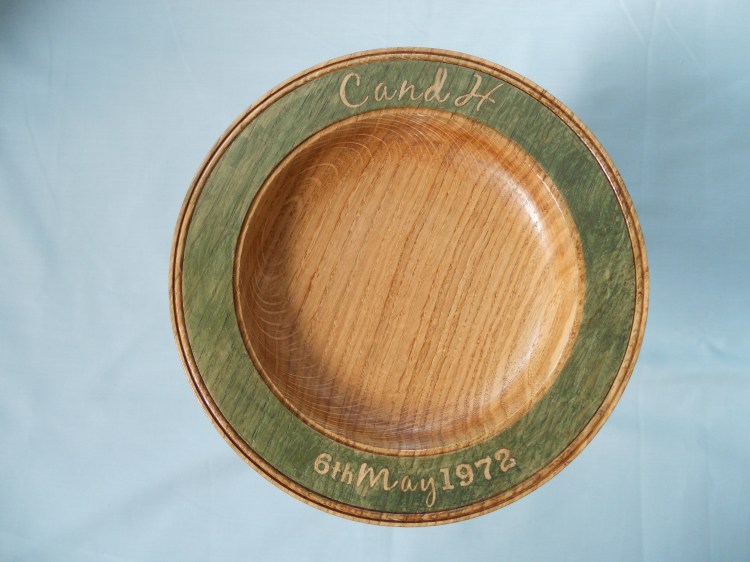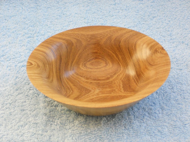 The above bowls and platters are turned from various woods, mostly from locally felled trees or off-cuts from the local timber merchants. Newley cut wood needs the ends sealed with wax or in my case with PVA sealant, as soon as possible, to stop them splitting. The larger pieces need to be sawn down the middle lengthwise to allow the moisture to escape. It takes about 1 year per 1 inch of thickness to dry out so the bowl does not distort after it is turned.