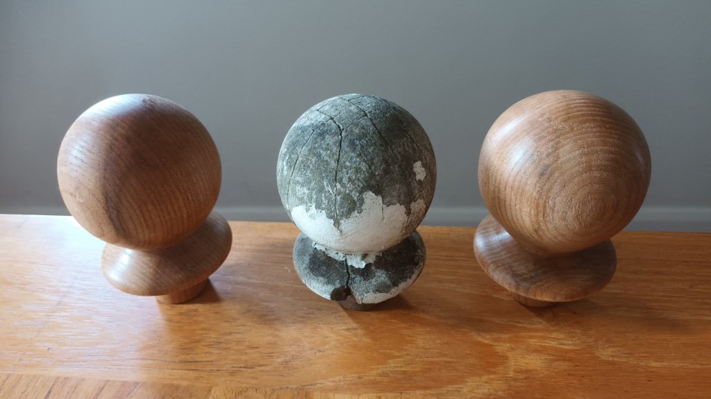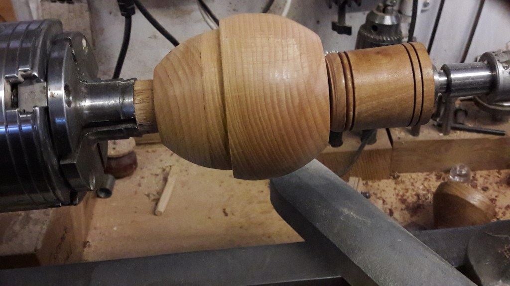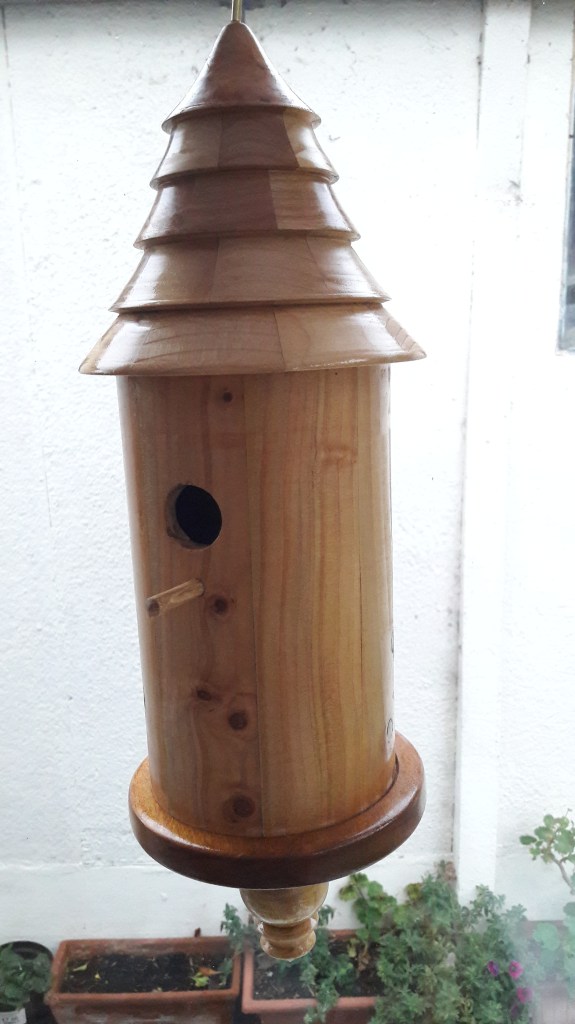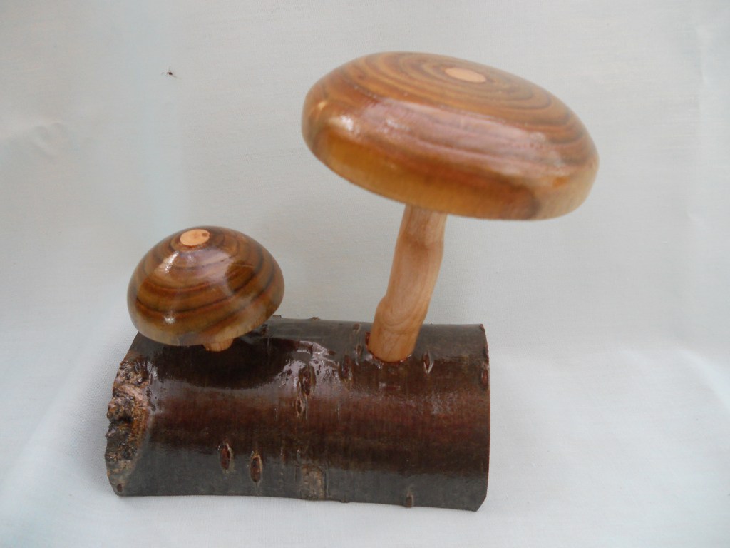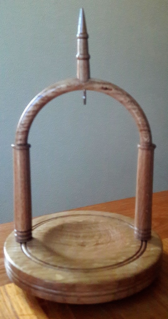 Pocket Watch StandTwo pastry presses for making tart casesStand for stone eggsStaved built bird houseRepaired ChairLamp baseOne of 4 feet for repair of Grandmother clockMushroom ornamentMushroomsOak inlaid bowlNew base for Sailing Club TrophyWool Bowl 08-01-2022